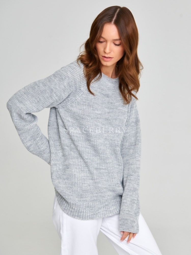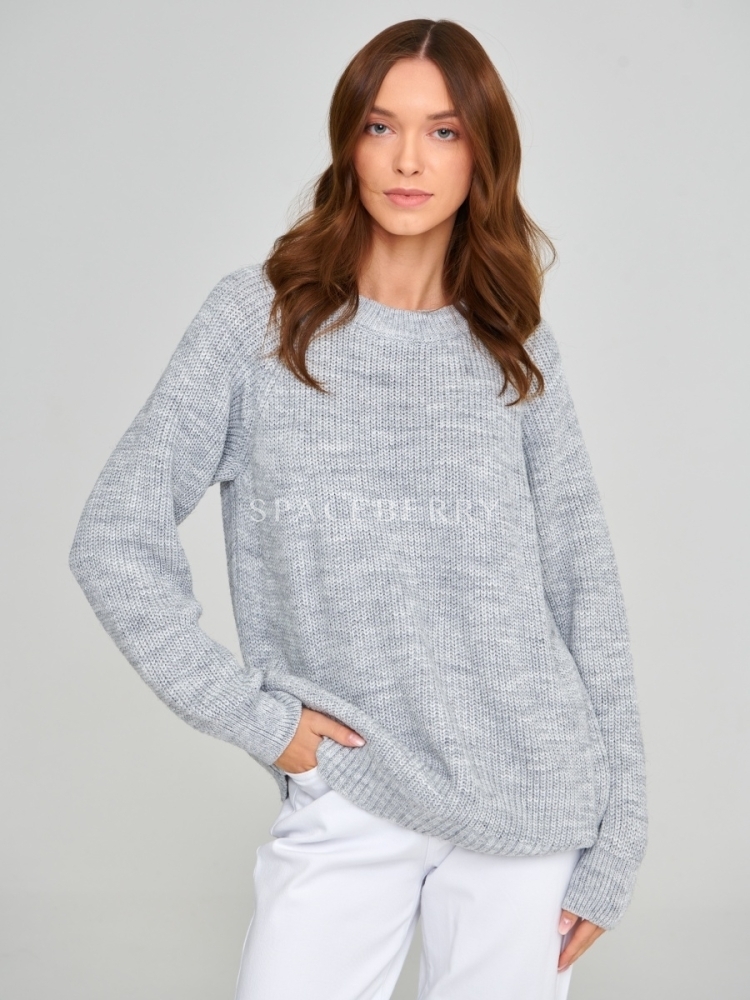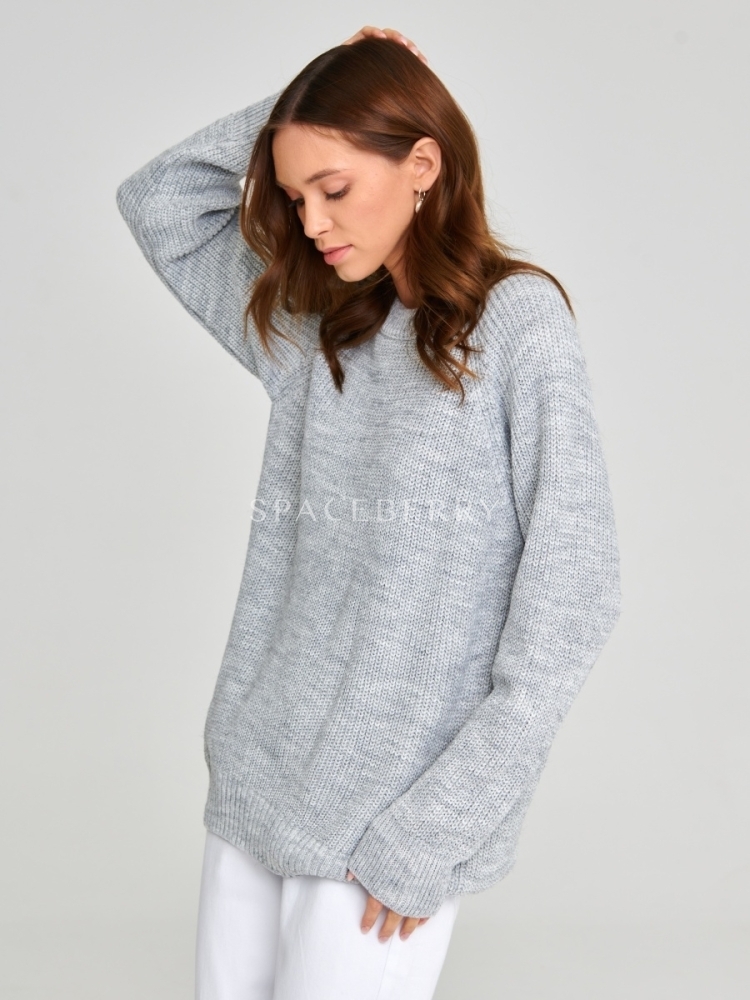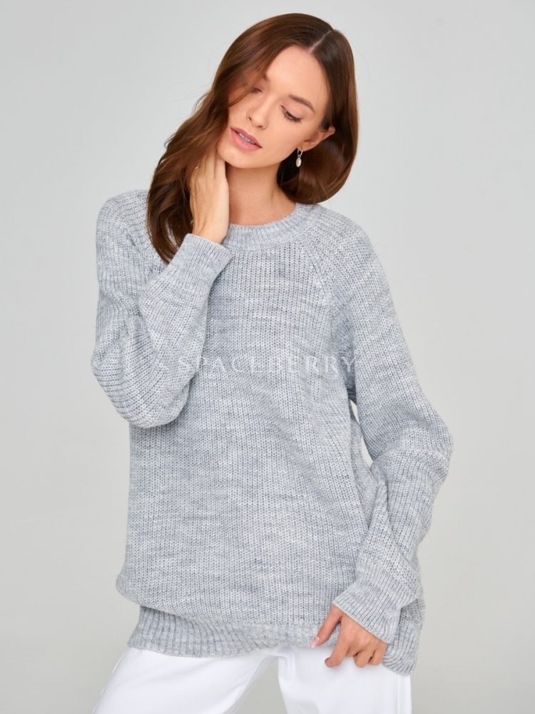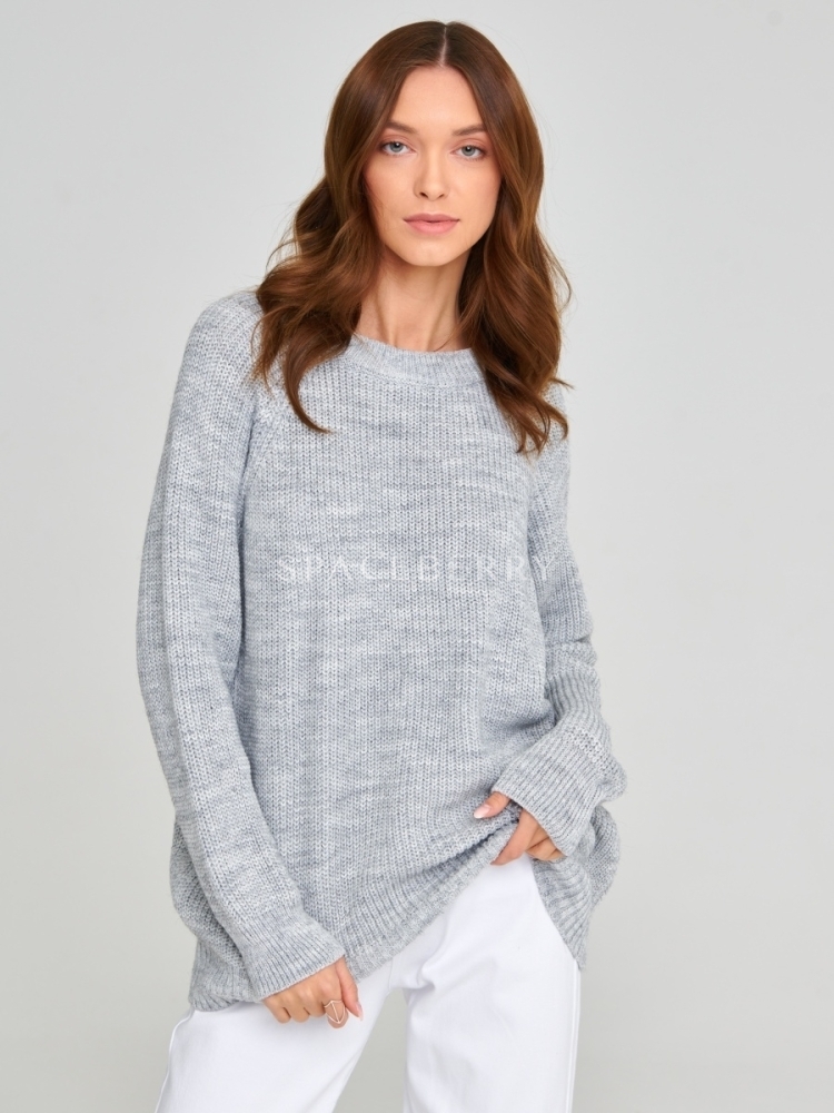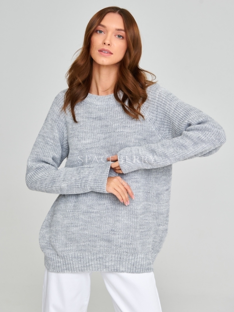 Женский вязаный свитер оверсайз, джемпер (серый) в Усолье-Сибирском